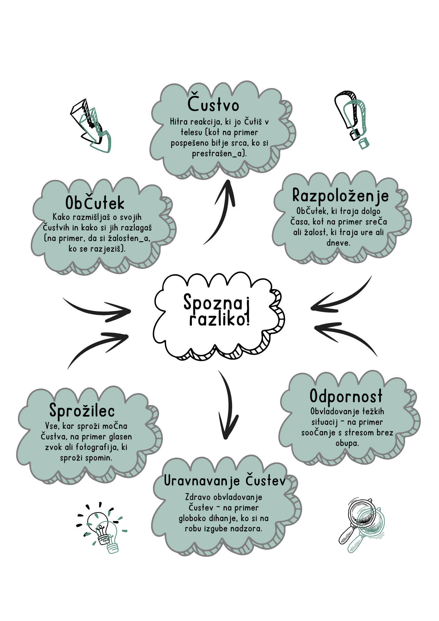• Spoznal_a razliko med čustvi, občutki in razpoloženji.